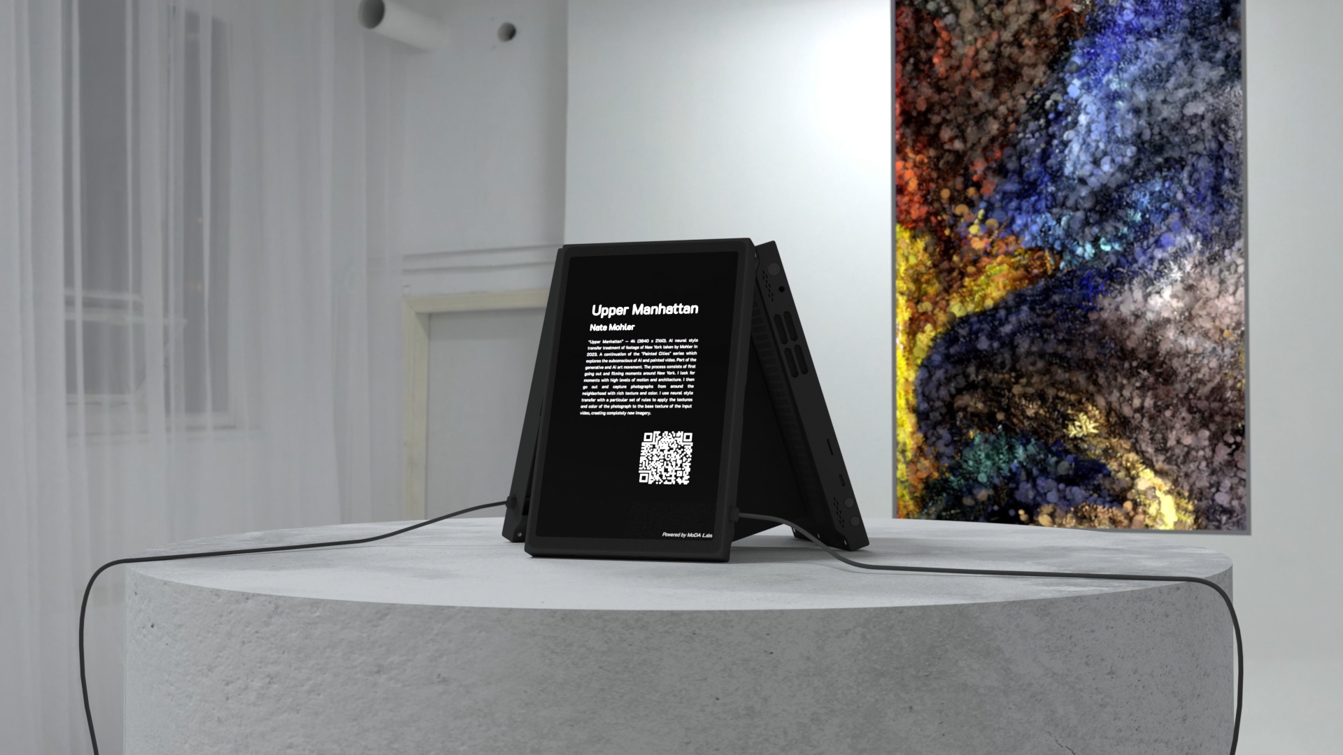 The MODA Plaque is a touchscreen media server enabling world class digital art exhibition technology. Museums, galleries, and collectors can showcase dynamic, highly computationally demanding artworks that captivate audiences and push the boundaries of digital art.